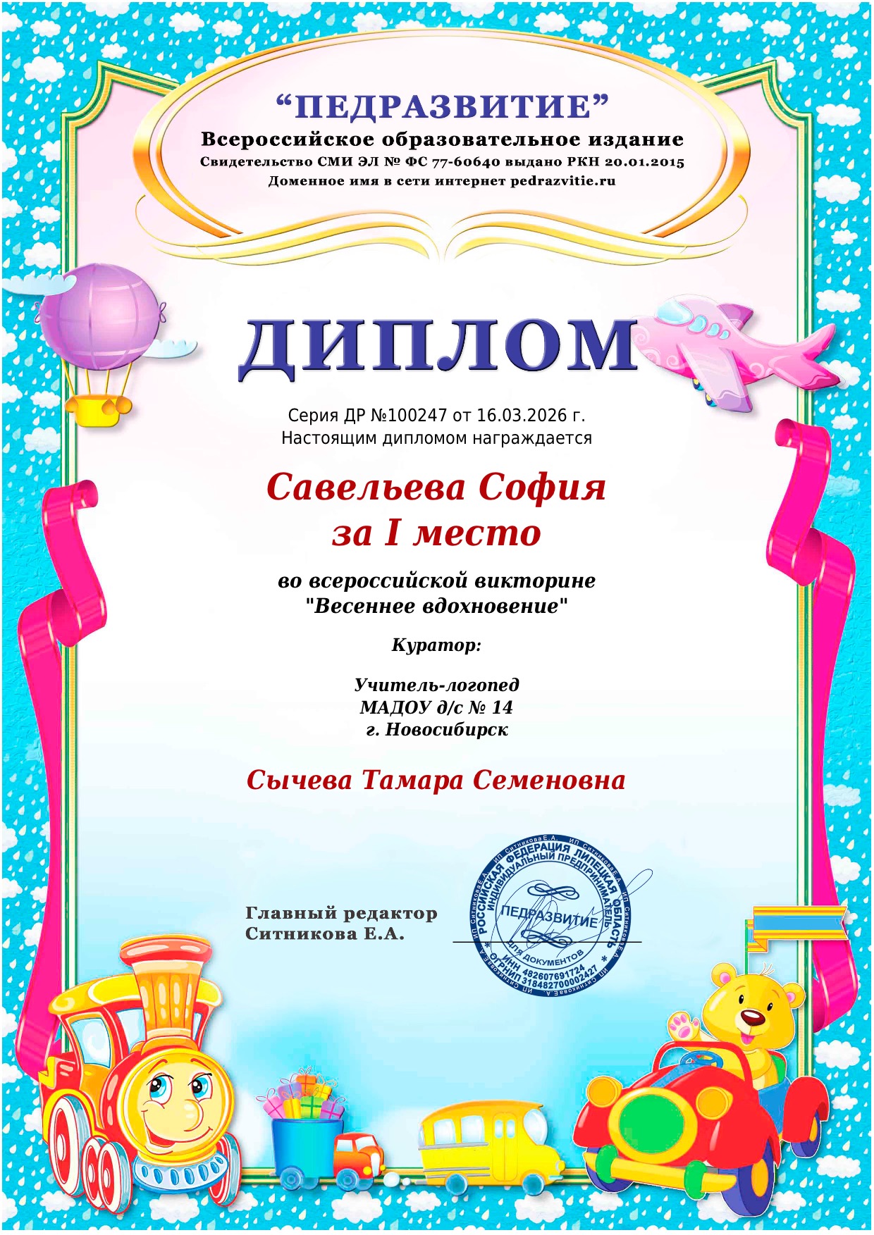 Диплом победителя (1 место)